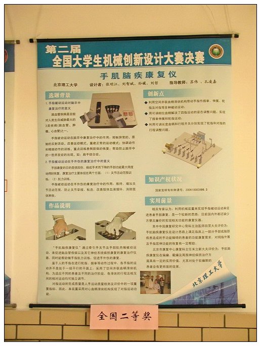 图为我校学生在第二届全国大学生机械创新设计大赛获奖作品。