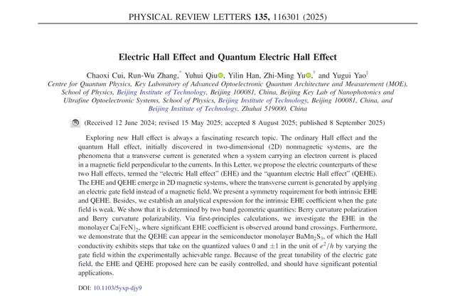 近日,开云.彩票(kaiyun)官方网站物理学院姚裕贵教授团队基于电场对贝里曲率和能带结构的...